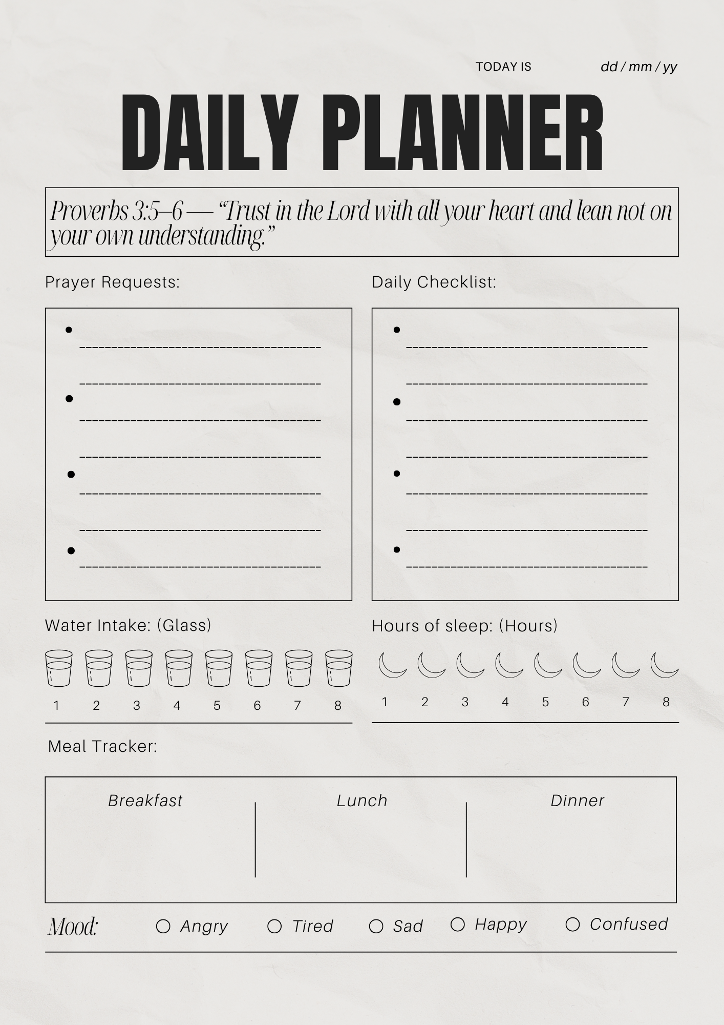 The Christian Daily Planner blends productivity with faith. Plan your schedule while staying grounded with scripture, prayer, and gratitude prompts.